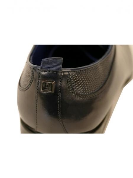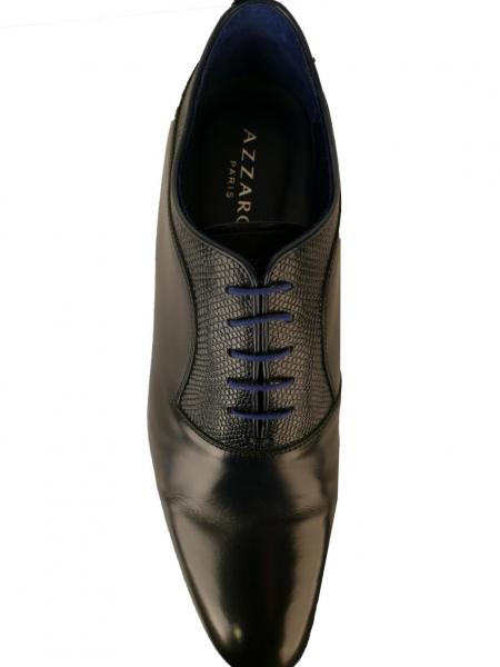 Avec le retour en force des bleus pour les costumes, le cognac s'est peu à peu imposé comme coloris de chaussures. Les réfractaires disposent avec ce derby cycliste Azzaro d'un modèle palliatif idéal. Avec ses dessus et intérieur cuir il est disponible en coloris marine du 39 au 45.
