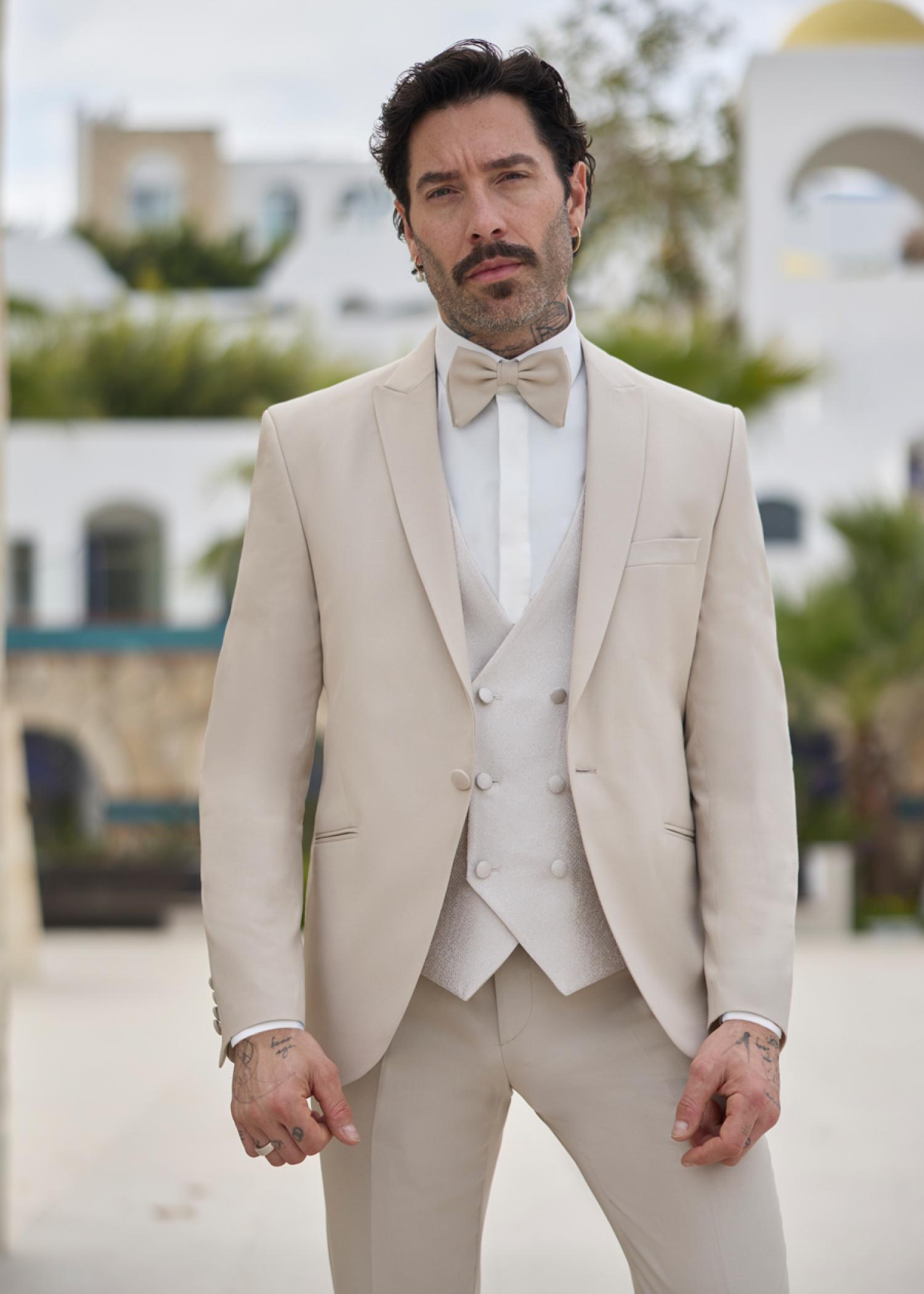 Célébrez votre union avec l’élégance d’un costume beige raffiné