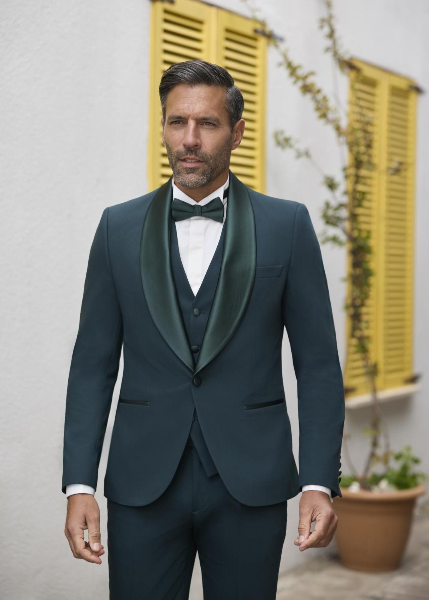 Cet ensemble de la maison Empire du Marié associe toutes les nouvelles tendances. Il est confectionné dans un très beau tissu couleur vert forêt .